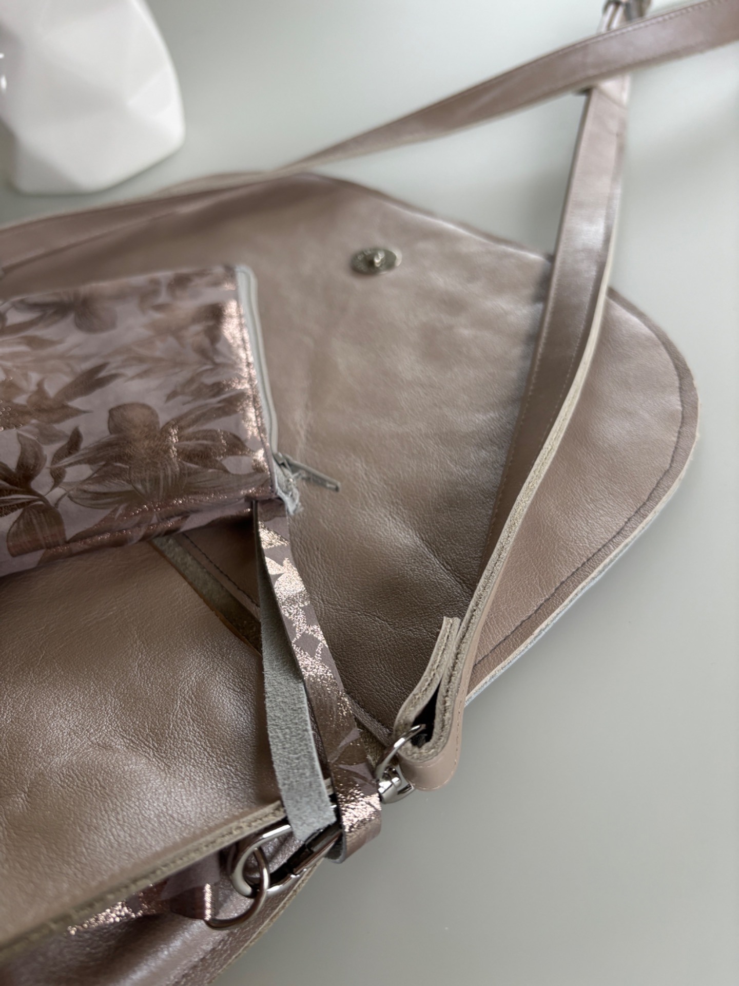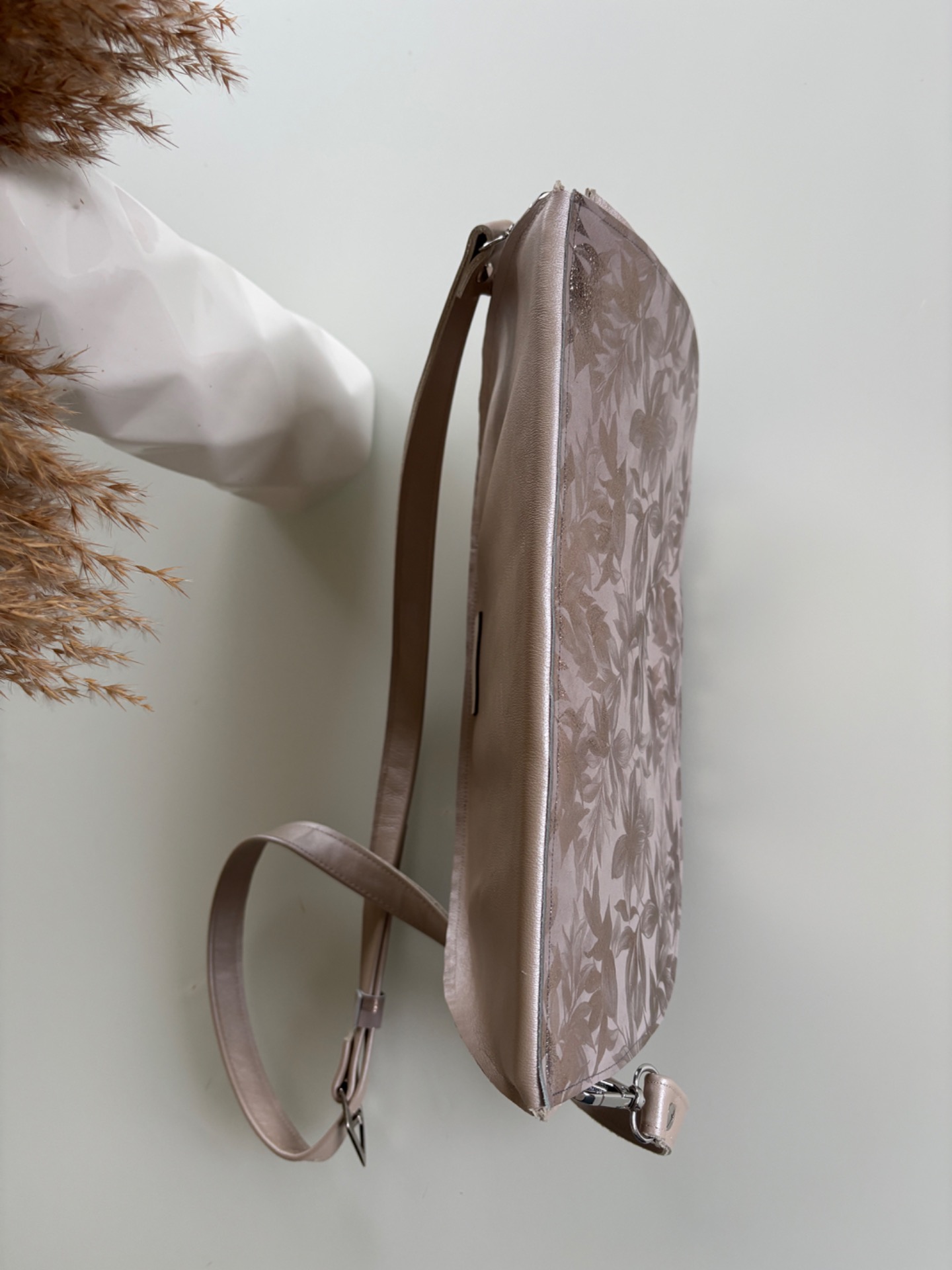 Diese exklusive Handtasche ist ein echtes Unikat und vereint stilvolle Eleganz mit durchdachter Funktionalität. Das edle, schimmernde Beige mit floralem Muster verleiht ihr eine luxuriöse Ausstrahlung und macht sie zum perfekten Begleiter für besondere Anlässe wie auch für den stilvollen Alltag.