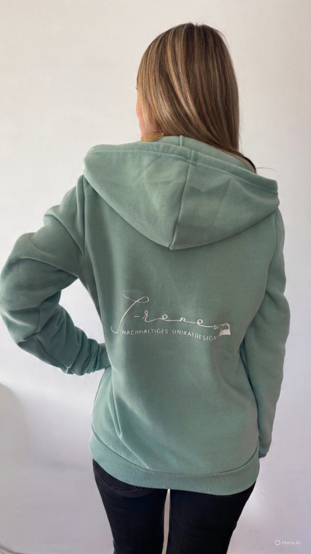 Der einfarbige Sweatstoff verleiht der Weste eine zeitlose Ausstrahlung und macht sie zu einem vielseitigen Begleiter für jede Gelegenheit. Der dezente Schriftzug "Nachhaltiges Unikatdesign" setzt ein bewusstes Statement für Individualität, Qualität und Verantwortung.