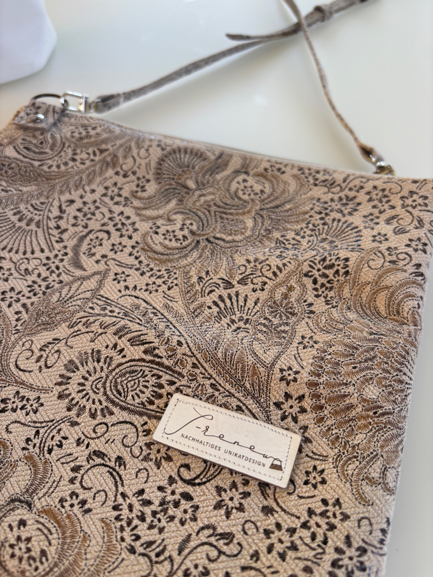 • Echtleder mit floralem Design